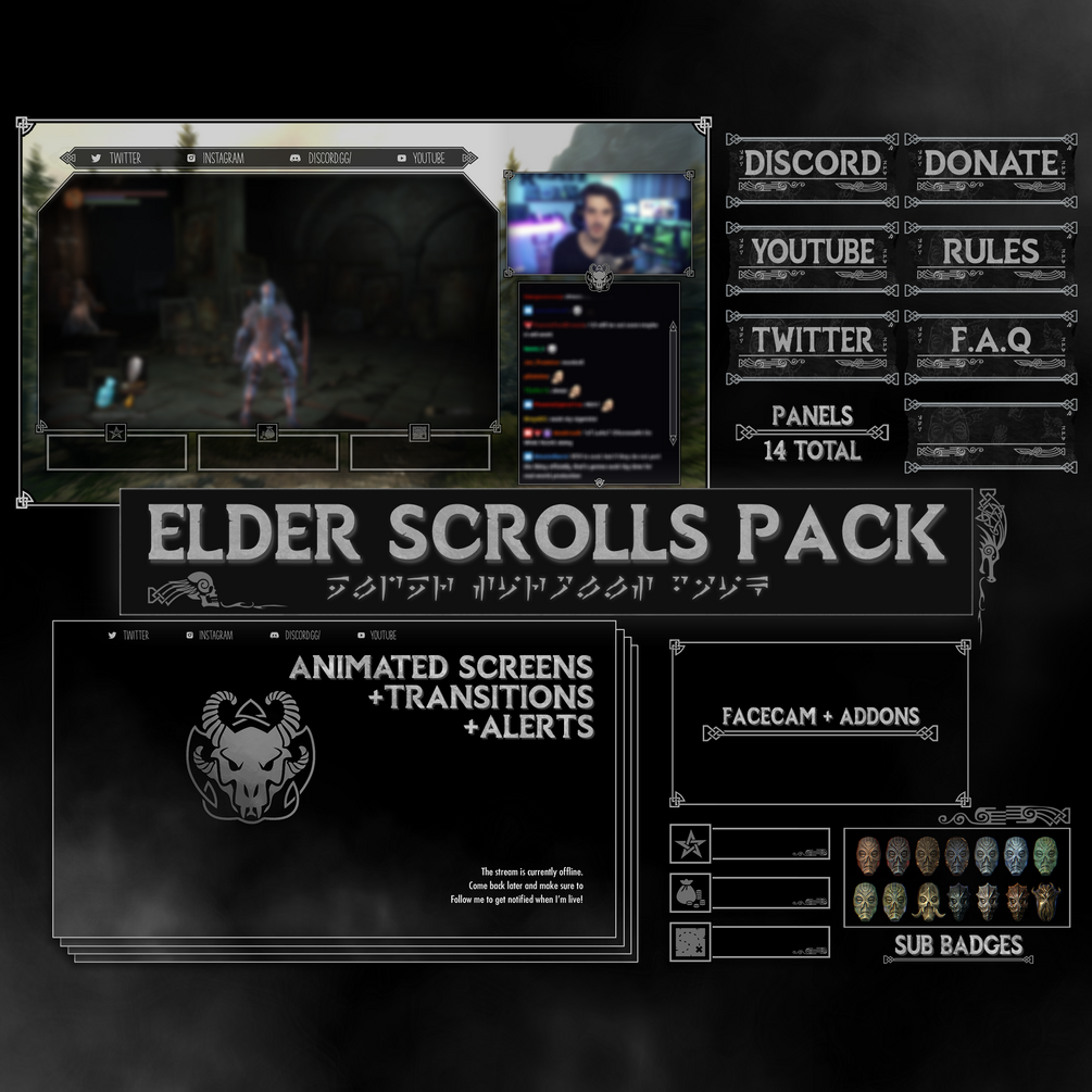 Thank you for your interest in the "Elder Scrolls Pack" Stream Overlay Graphics Package!
